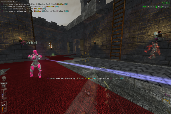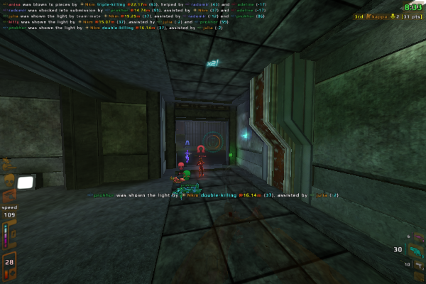 - Many game modes (Deathmatch, Capture-the-flag, Defend-and-control, Bomber-ball, Race) with a lot of mutators (too many to list) which give you variations into almost infinity.